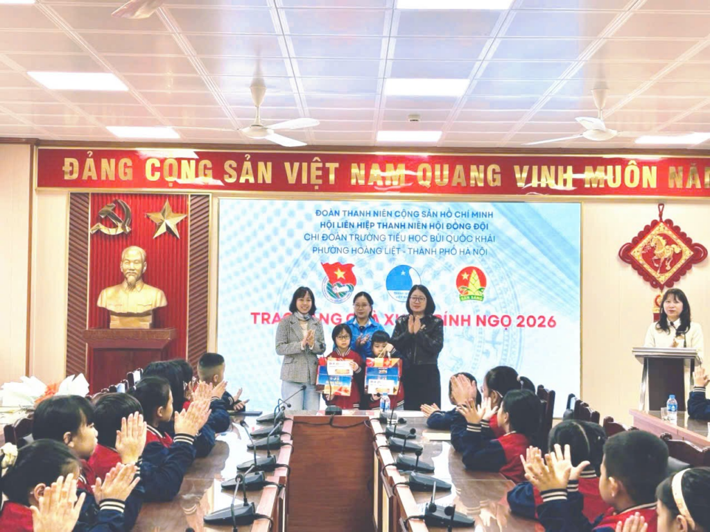 Sáng ngày 11/2/2026 được sự quan tâm của Đoàn phường Hoàng Liệt, trường Tiểu học Bùi Quốc Khái được hỗ trợ trao tặng 2 suất quà cho em học sinh Nguyễn Hoàng Bảo Lâm lớp 1A12 và Nguyễn Khánh An Bình lớp 3A6.