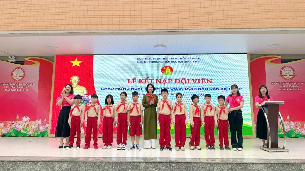 Trong không khí trang trọng và tự hào của những ngày tháng 12 lịch sử, hòa chung niềm vui của cả nước hướng tới kỷ niệm 81 năm Ngày thành lập Quân đội nhân dân Việt Nam, sáng ngày 22/12/2025, Trường Tiểu học Bùi Quốc Khái đã long trọng tổ chức Chương trình Lễ kết nạp Đội viên mới đợt I và Tuyên truyền quy định pháp luật về quản lý, sử dụng vũ khí, vật liệu nổ, công cụ hỗ trợ và pháo.