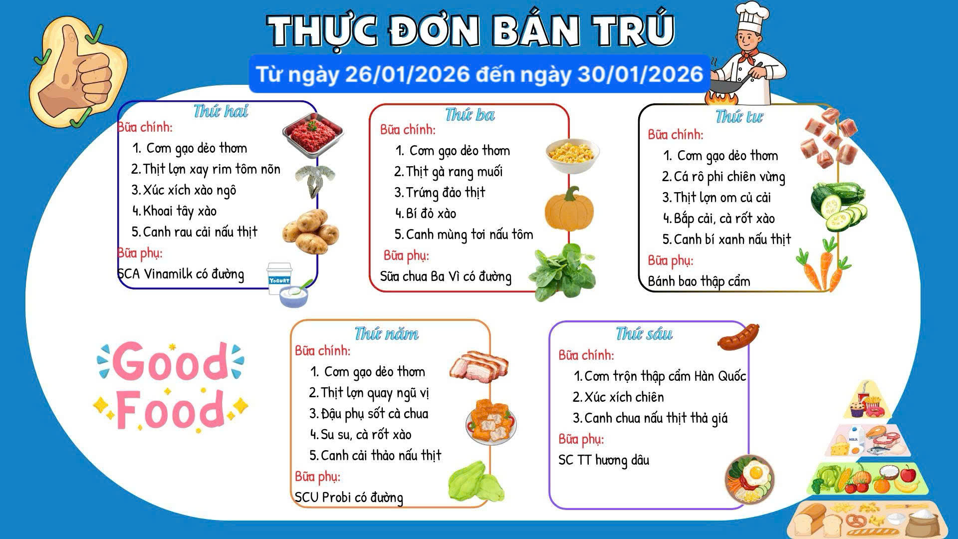 THỰC ĐƠN BÁN TRÚ (Từ ngày 26/01/2026 đến ngày 30/01/2026) 0 minutes read January 26, 2026 Share: Share: Previous Chi đoàn Trường Tiểu học Bùi Quốc Khái khánh thành công trình “ Hàng cây thanh niên” 2 minutes read Next THỰC ĐƠN BÁN TRÚ (Từ ngày 2/02/2026 đến ngày 6/02/2026) 0 minutes read