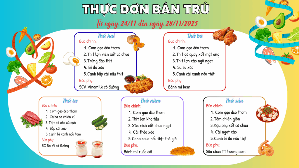 THỰC ĐƠN BÁN TRÚ TUẦN 12 (Từ ngày 24/11 đến ngày 28 tháng 11) 0 minutes read November 23, 2025 Share: Share: Previous Trường Tiểu học Bùi Quốc Khái tổ chức tri ân ngày nhà giáo Việt Nam 20/11 3 minutes read Next Trường Tiểu học Bùi Quốc Khái - Sinh hoạt dưới cờ với chủ đề: Thầy cô, mái trường, bạn bè. 3 minutes read No comments yet! You be the first to comment. Leave a Reply Cancel replyYour email address will not be published. Required fields are marked * Save my name, email, and website in this browser for the next time I comment. Submit
