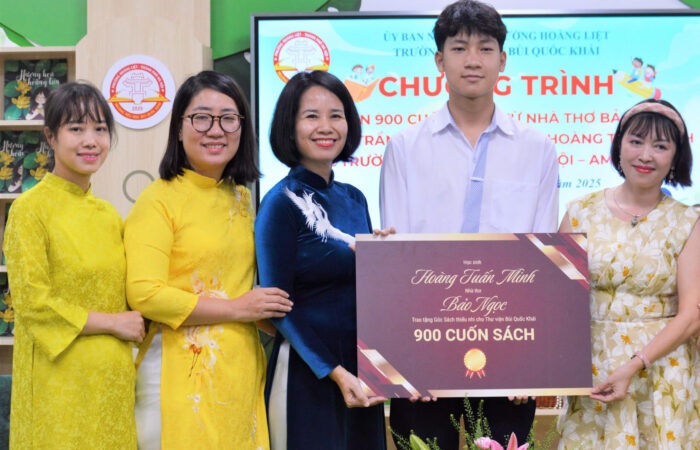 Trong không gian ấm áp của thư viện Trường Tiểu học Bùi Quốc Khái, Phường Hoàng Liệt, Hà Nội, chương trình “Tiếp nhận 900 cuốn sách, giới…