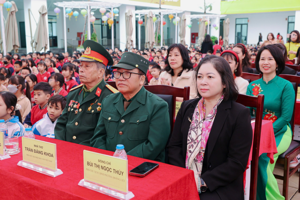 Nhà trường đã tổ chức giao lưu văn nghệ, tri ân các cựu chiến binh, những người lính năm xưa đã có nhiều đóng góp cho sự nghiệp bảo vệ Tổ quốc và luôn dành tình cảm, sự quan tâm sâu sắc tới thế hệ măng non. Những tiết mục văn nghệ được các em thể hiện bằng tất cả sự hồn nhiên, tự tin và lòng biết ơn sâu sắc. Đặc biệt là màn trình diễn tái hiện hình ảnh chú bộ đội cụ Hồ và tình yêu đất nước. Những bó hoa tươi thắm, những cuốn sách trao tay không chỉ mang giá trị vật chất mà còn là thông điệp yêu thương, trách nhiệm và truyền thống “ Uống nước nhớ nguồn” được lan tỏa tới các em học sinh.Thông qua các hoạt động giao lưu, chia sẻ câu chuyện về người lính Cụ Hồ, chương trình đã góp phần giáo dục học sinh truyền thống quân đội nhân dân Việt Nam tinh thần yêu nước, lòng tự hào dân tộc và tinh thần biết ơn đối với các thế hệ cha anh đã hy sinh vì độc lập, tự do của Tổ quốc.