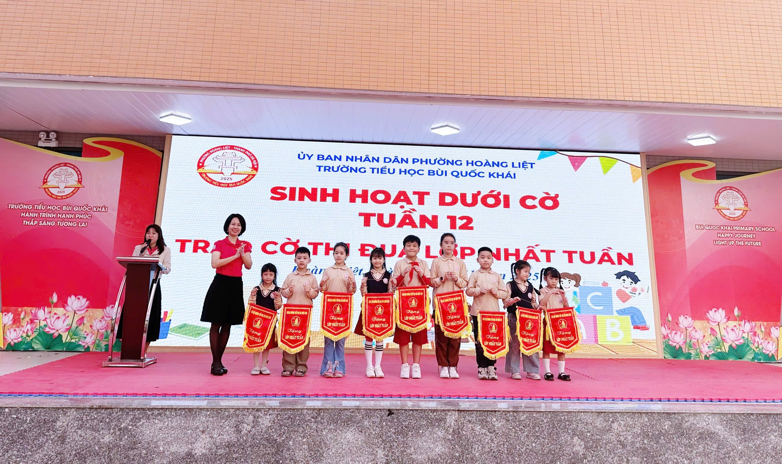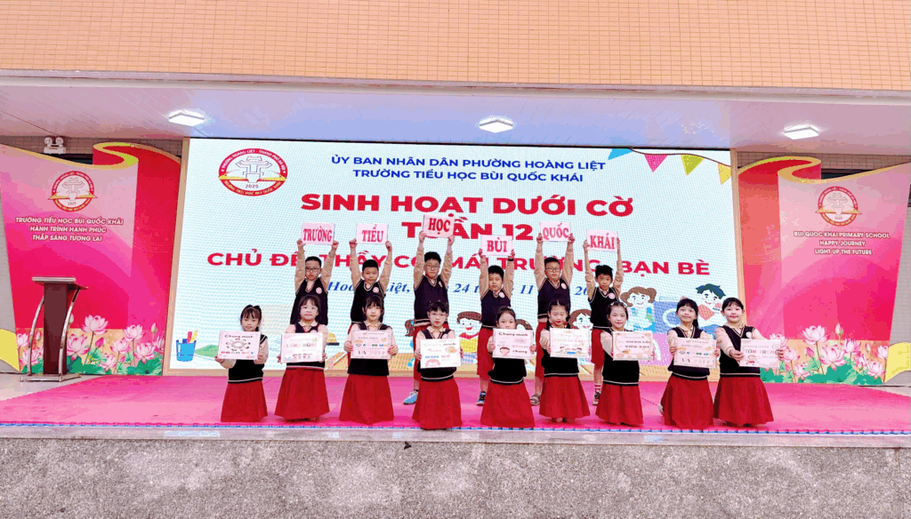 Sáng ngày 24/11/2025 trong không khí trang nghiêm của buổi chào cờ đầu tuần, toàn thể cán bộ, giáo viên và học sinh trường Tiểu học Bùi Quốc Khái đã cùng nhau tham dự buổi sinh hoạt dưới cờ tuần 12 với chủ đề “ Thầy cô, mái trường, bạn bè“.
