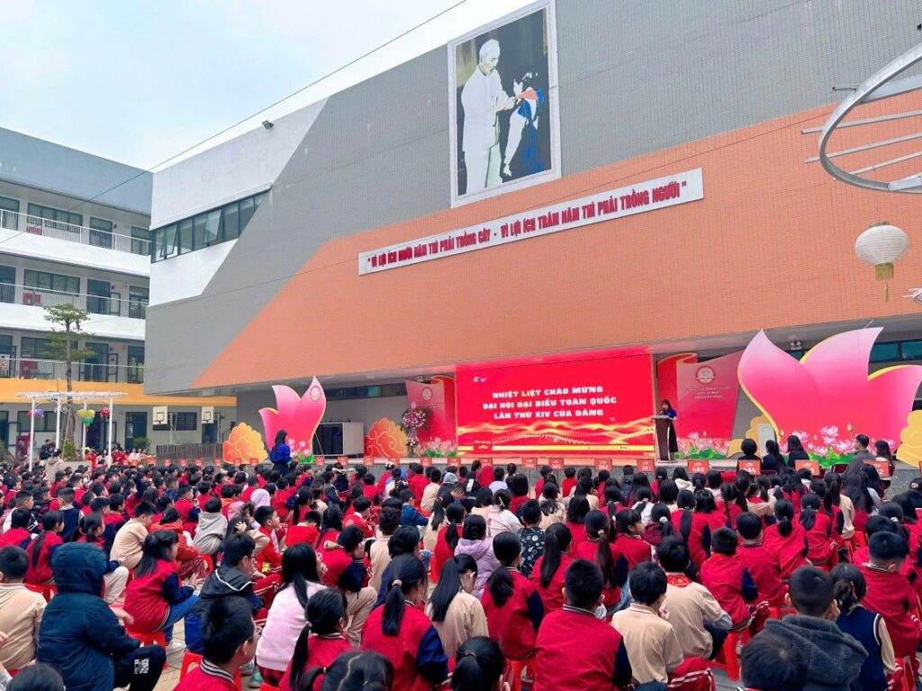 Trong khuôn khổ buổi lễ, đại diện Ban giám hiệu nhà trường đã tổ chức tuyên truyền về ý nghĩa, nội dung, tầm quan trọng của Đại hội đại biểu toàn quốc lần thứ XIV của Đảng. Đại hội là dịp để toàn Đảng, toàn dân và toàn quân nhìn lại chặng đường phát triển của đất nước, đánh giá những thành tựu đã đạt được, đồng thời đề ra phương hướng, mục tiêu, nhiệm vụ và giải pháp trọng tâm nhằm đưa đất nước tiếp tục phát triển nhanh, bền vững trong thời kỳ mới.
