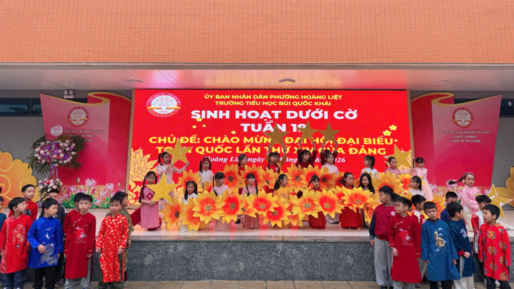Ngày 19/01/2026 BCH trường Tiểu học Bùi Quốc Khái long trọng tổ chức Lễ chào cờ đầu tuần kết hợp tuyên truyền, chào mừng Đại hội đại biểu toàn quốc lần thứ XIV của Đảng; Chào mừng cuộc bầu cử quốc hội và đại biểu hội đồng nhân dân các cấp (Nhiệm kỳ 2026-2031); Mừng Đảng mừng xuân Bính Ngọ 2026.