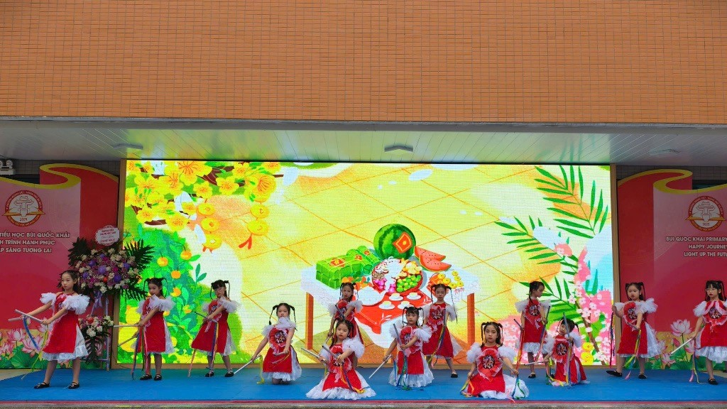 Mở đầu là chương trình văn nghệ chào mừng do các em học sinh nhà trường biểu diễn. Những tiết mục văn nghệ với chủ đề Tết vui tươi, trong sáng đã tạo không khí phấn khởi, góp phần khích lệ tinh thần thầy và trò trước khi bước vào nội dung chính của Lễ sơ kết.