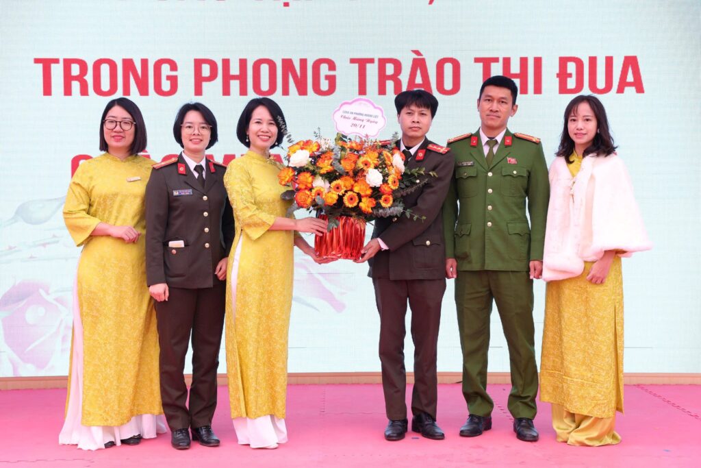 Đại diện Công an phường tặng hoa nhà trường